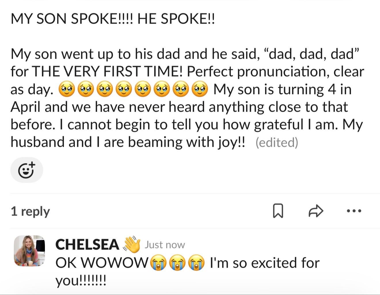 â˘Â Waking up to your child saying a word for the first time⌠after years of silence